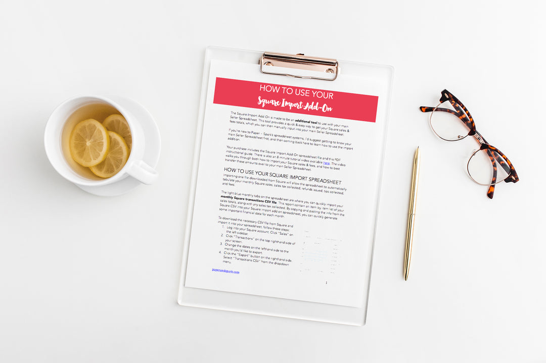 Get the convenience of instantly totaling your Square sales & fees for your existing Seller Spreadsheet with the Square import add-on spreadsheet.