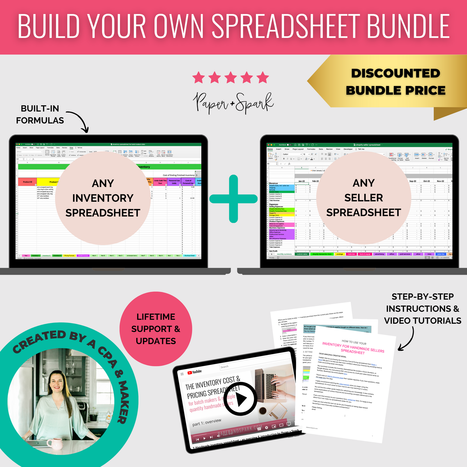 Get them both bundled together and save at least $25! Pick out the exact spreadsheet combo for whatever and wherever you sell. The discounted total will show up after you add both to your bundle. (Optional - add one import add-on at a discount too!)